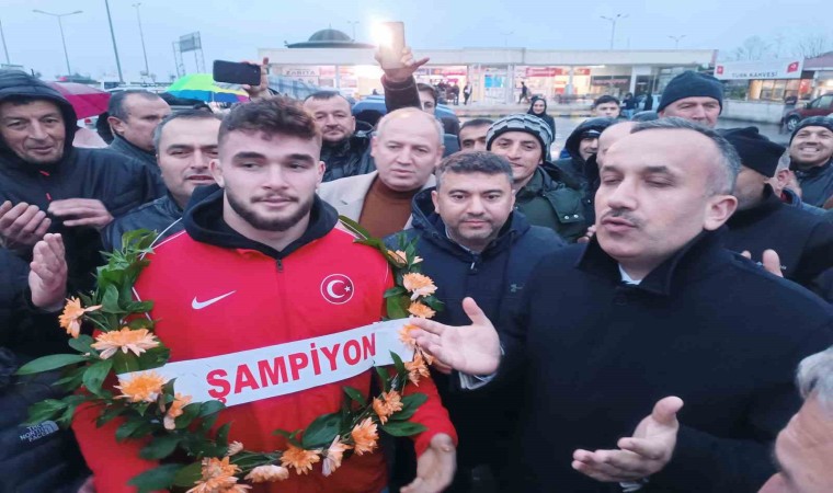 Terminal girişinde kalabalık vatandaşlar tarafından karşılanan şampiyon güreşçi Alperen Atar yaptığı açıklamada, hedefinin Avrupa, dünya ve olimpiyat şampiyonluğu olduğunu söyledi.