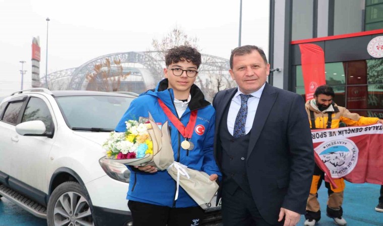 Türkiye’ye Paralel Slalom Yarışmaları’nda ilk altın madalyayı kazandıranKayserili Kayakçı Ömer Faruk Deliktaş, İsviçre dönüşünde Kayseri’de coşkulu bir şekilde karşılandı.