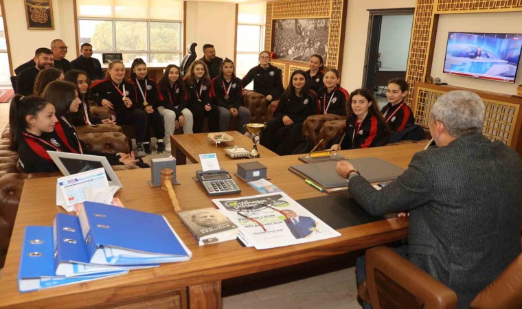 Koçarlı Belediyespor Küçük Kızlar Voleybol takımı kazandıkları Aydın il birinciliği sevincini Koçarlı Belediye Başkanı Nedim Kaplan ile paylaştı.