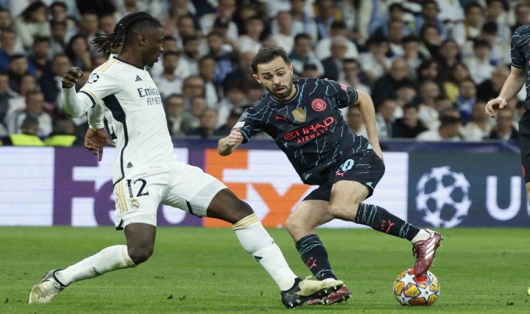 UEFA Şampiyonlar Ligi’nde çeyrek final heyecanı iki maçla başladı. Son şampiyon Manchester City, İspanya’da Real Madrid’e konuk oldu. Fransız hakem Letexier’in düdük çaldığı müsabakanın 2. dakikasında İngiliz ekibi Bernardo Silva’nın golüyle 1-0 öne geçti. Ev sahibi Real Madrid, 12. dakikada Camavinga ile beraberliği sağladı. Sağ kanatta topla buluşan Fransız oyuncu ceza yayına doğru ilerleyerek yaptığı vuruşta Ruben Dias’a çarpan top filelerle buluştu. Bu golden iki dakika sonra sol kanattan hızla ceza sahasına giren Rodrygo, takımını öne geçiren golü kaydetti. İlk yarıyı 2-1 geride kapatan City, 66’da Foden, 71’de de Gvardiol’un ceza sahası dışından attıkları gollerle 3-2 öne geçti. İspanyol ekibi bu dakikadan itibaren baskısını arttırken, 79. dakikada Vinicius’un pasında Federico Valverde topu filelere göndererek skoru 3-3’e taşıdı. Karşılaşmada başka gol olmazken iki takım da sahadan berabere ayrıldı. Real Madrid’de yedek kulübesinde yer alan milli futbolcu Arda Güler, süre alamadı.