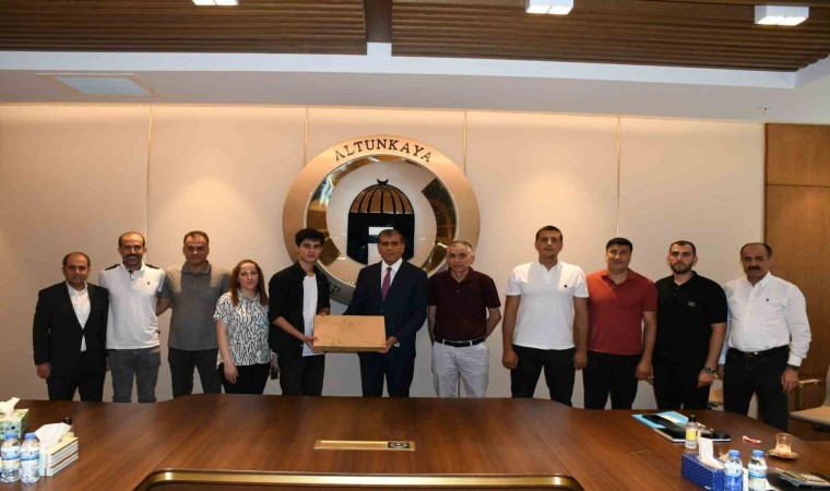 LGS sınavında Midyat’ta ilçe birincisi olan Altunkaya Ortaokulu öğrencisi Emirhan Küçükaslan, Okul Müdürü Abdülkadir Kurnaz, Müdür Yardımcısı Fatma Keleş ve bir grup öğretmenle birlikte Altunkaya Şirketler Grubu Yönetim Kurulu Başkanı Mahsum Altunkaya’yı ziyaret etti.