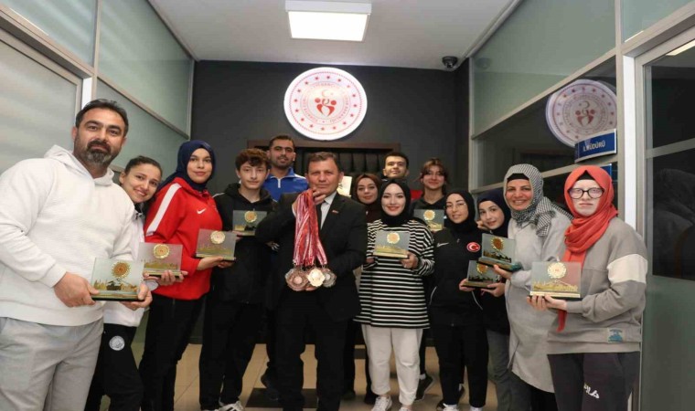 Ziyaretten duyduğu memnuniyeti dile getiren İl Müdürü Kabakcı, “Kayseri’ye madalya kazandıran, şampiyonalarda Kayseri’nin adını başarılarıyla duyuran sporcularımızı İl Müdürlüğümüzde ağırlamaktan memnuniyet duyuyoruz. Bu madalyalar Balkan, Avrupa, Dünya, Olimpiyat madalyalarının ayak sesleri. İnşallah bu sporcularımız uluslararası şampiyonalarda Şanlı Türk Bayrağımızı göndere çektirip İstiklal Marşı’nı okutacaklar. Başarılı sporcularımızı ve antrenörleri Arzu Sayan, Yavuz Sayan ve Yunus Emre Sayan’ı tebrik ediyor, başarılarının devamını diliyorum” dedi.