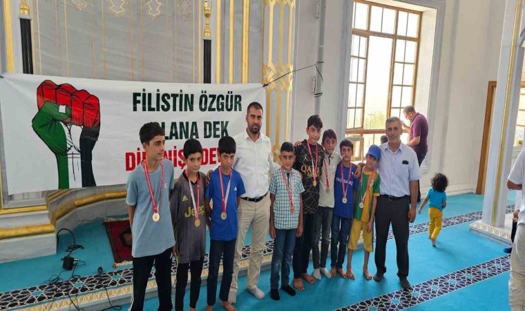 Samsat İlçe Müftülüğü koordinesinde Kur’an Kursu hocaları nezaretinde gerçekleştirilen etkinlikte çocuklar düzenlenen futbol turnuvası sonunda madalyalarını aldılar. Filistin konulu şiir ve marşlar seslendiren çocuklar, Filistinli çocukların islenen bu zulmü hak etmediklerini belirterek, katliamın durdurulmasını istedi.