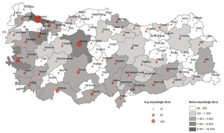 Türkiye İstatistik Kurumu (TÜİK) 2023 yılı iç göç istatistiklerini açıkladı. Türkiye’de 2023 yılında 3 milyon 450 bin 953 kişi iller arasında göç etti.
