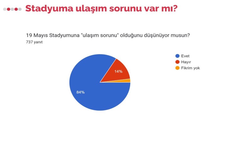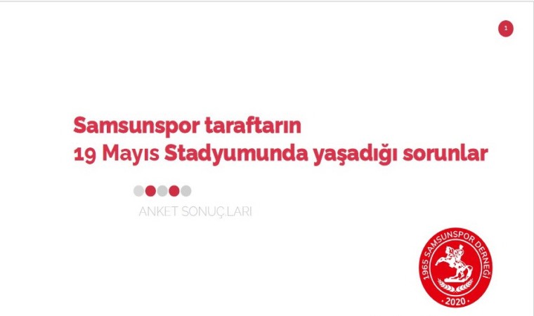 Dernek tarafından Samsun 19 Mayıs Stadyumu ile ilgili yapılan anketi dolduran taraftarlara stadyumla ilgili birçok soru yöneltildi. Ankete katılan taraftarlar “Stadyuma ulaşım sorunu var mı?” sorusuna yüzde 84 “evet”, “Otopark sorunu yaşıyor musunuz?” sorusuna yüzde 74 “evet”, “Turnike girişlerinde sorun yaşıyor musunuz?” sorusuna yüzde 63 “evet”, “İnternet sorunu yaşıyor musunuz?” sorusuna yüzde 85 “evet”, “Tribünde sigara yasağına uyuluyor mu?” sorusuna yüzde 64 “hayır”, “Stadyum dışında ATM eksikliğini hissediyor musunuz?” sorusuna yüzde 74 “evet” cevaplarını verdi.