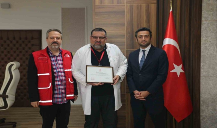 Türk Kızılay Madalya Yönetmeliği gereğince yıl içinde bin 500 ünite ve fazlası kan bağışı yapan kurumlara kurumsal altın madalya takdim ediliyor. 2023 yılında Samsun Eğitim ve Araştırma Hastanesi’ne kurulan kan bağışı noktalarında, hastane personelleri ve gelen ziyaretçiler tarafından bin 833 ünite kan bağışlandı. Bunun sonucunda düzenlenen törenle Samsun Eğitim ve Araştırma Hastanesi Başhekimi Doç. Dr. Ümit Çallı kurum adına kurumsal altın madalyayı Samsun Kızılay İl Başkan Onur Çoban’dan aldı. 2024 yılında hastanede devam eden kan bağışında ilk 9 ayda 3 bin 200 ünite kan bağışlandı. Madalya ve plaket törenine, Orta Karadeniz Bölge Kan Merkezi Müdürü Dr. Muhsin Yıldırım, Samsun Kan Bağışı Merkezi Müdürü Dr. Engin Erdoğan, Bileşen Dağıtım Birim Yöneticisi Dr. Eylem Uyar, Program Yönetimi Birim Yöneticisi Murat Çakmak ve Kızılay Heyeti katıldı.