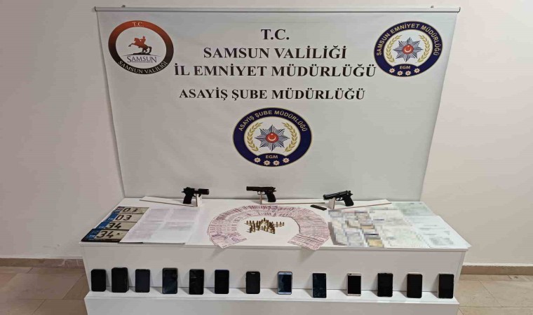 Şüphelilerin ikametlerinde yapılan aramalarda, 3 adet tabanca ve bu tabancalara ait 20 adet fişek, 23 adet 9.19 mm fişek, 1 adet şarjör, suçtan elde edildiği değerlendirilen 58 bin 800 TL , dijital materyaller, 2 adet araç plakası, noter belgeleri, araç alım-satım işlemlerine ilişkin çok sayıda evrak ve diğer materyaller ele geçirildi.