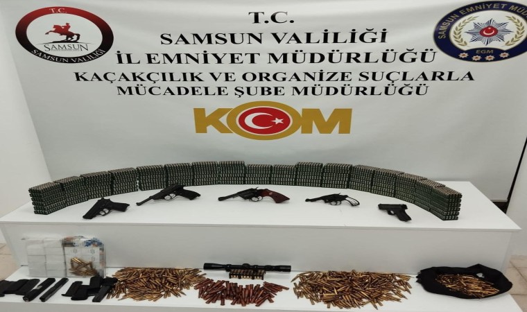 Edinilen bilgiye göre, Samsun Cumhuriyet Başsavcılığı koordinesinde kaçakçılık suçlarıyla mücadele kapsamında çalışma yapan Samsun Emniyet Müdürlüğü Kaçakçılık ve Organize Suçlarla Mücadele (KOM) Şube Müdürlüğü ekipleri, Samsun’da silah ve mühimmat ticareti yapan şahıslara ve şahısların irtibatlı olduğu il dışındaki suç ortaklarına yönelik eş zamanlı operasyon düzenledi. Samsun merkez ve Terme ilçesi ile Ankara, Kırıkkale ve Yozgat illerinde tespit edilen adreslerde yapılan aramalarda 4 adet ruhsatsız tabanca, bin 205 adet vahim nitelikli değişik çap ve ebatlarda uzun namlulu otomatik tüfek mermisi, 5 bin 642 adet tabanca mermisi, 1 adet kuru sıkı tabanca, 1 adet ruhsatsız tüfek, 1 adet tabanca sürgüsü, 1 adet tabanca sürgü takımı,1 adet keskin nişancı dürbünü ve çeşitli fişek doldurma aparatları ele geçirildi. Silahların bazılarının derin dondurucu içindeki gıda paketleri arasına gizlenmiş poşetlerde ele geçmesi dikkat çekti.