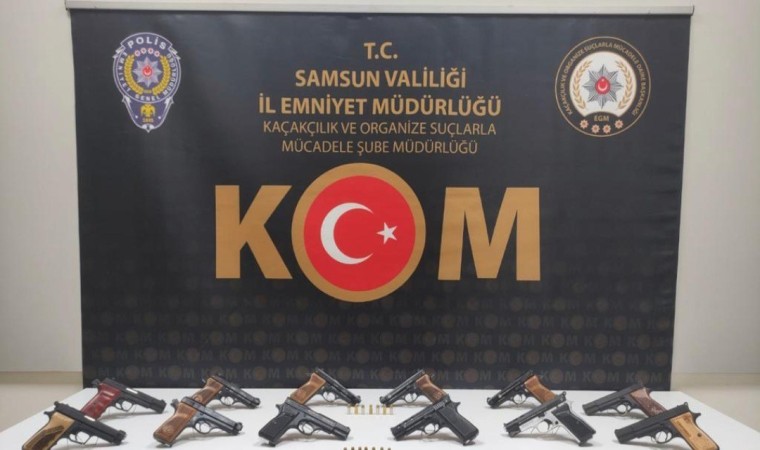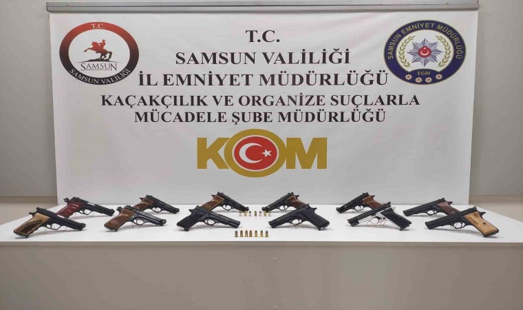 Edinilen bilgiye göre, Samsun Cumhuriyet Başsavcılığı koordinesinde kaçakçılık suçlarıyla mücadele kapsamında çalışma yapan Samsun Emniyet Müdürlüğü Kaçakçılık ve Organize Suçlarla Mücadele (KOM) Şube Müdürlüğü ekipleri, silah ticaretine yönelik gerçekleştirilen 2 aylık projeli çalışma neticesinde, takibe alınan bir kamyoneti bu sabah saat 08.00 sıralarında Tekkeköy ilçesi Samsun Ordu karakolundaki polis uygulama noktasında durdurdu. Araç içerisinde yapılan aramada kamyonetin kapı içerisine zulalanmış halde, 11 adet ruhsatsız tabanca ve 14 adet tabanca fişeği ele geçirildi. Olayla ilgili araçta bulunan M.Ş. gözaltına alındı. Operasyonun devamında İlkadım ilçesi Hastane Mahallesi’nde yapılan aramada, 1 adet daha ruhsatsız tabanca ele geçirildi.