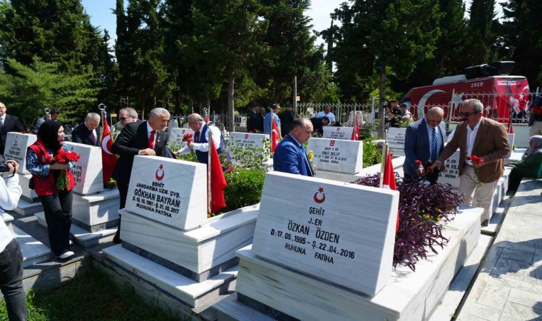 Şehitlik ziyareti programına kaymakamlar, belediye başkanları, il müdürleri, asker erkan ve şehit yakınları katıldı.