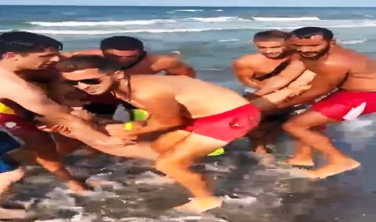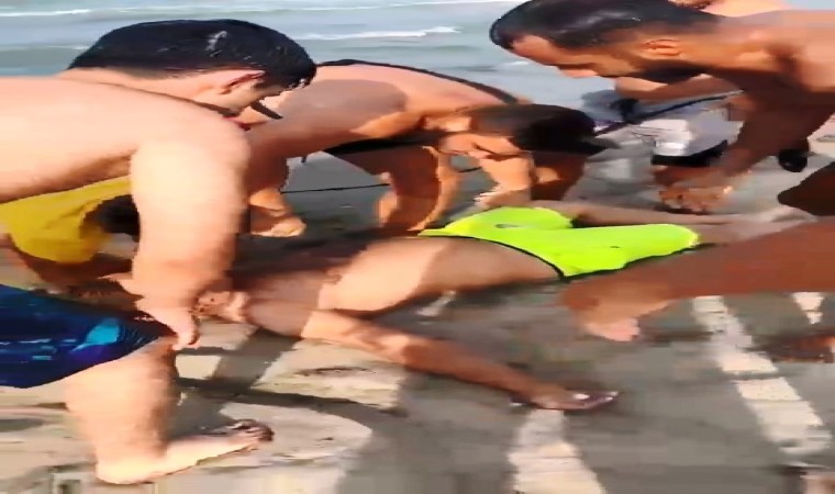 Cankurtaranlar tarafından sahile çıkartılan Turan İ., yapılan ilk müdahalenin ardından sağlık ekibine teslim edildi.