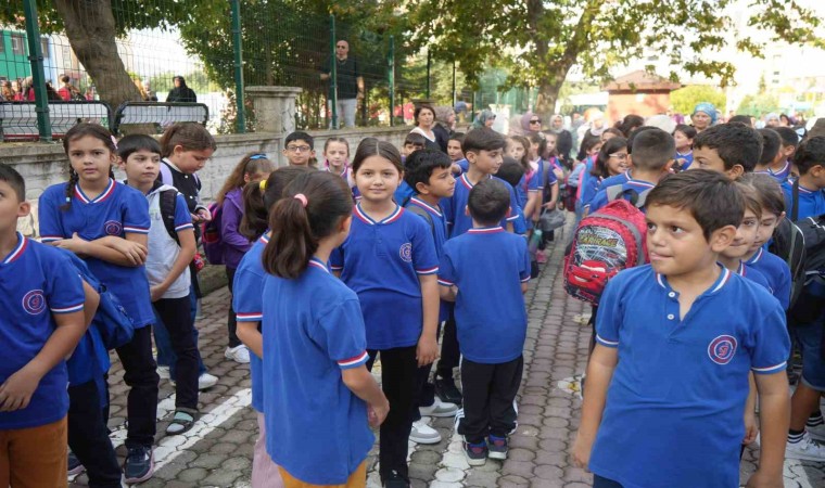 Yeni eğitim-öğretim döneminin ilk ders zilinin çalmasıyla birlikte 3 aylık aranın ardından okuluna kavuşan öğrenciler, sınıflara koşarak girdiler.