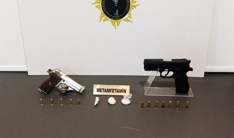 Canik ilçesi Atatürk Mahallesi’nde şüphe üzerine durdurulan araçta yapılan aramada, 2,40 gram metamfetamin, uyuşturucu kullanma aparatı ile aracın kapı içine zulalanmış halde 1 adet ruhsatsız tabanca ve 5 adet tabanca fişeği ele geçirildi. Araçta bulunan A.Y. (43) ve E.B.(33) gözaltına alındı. Soruşturma devam ediyor.