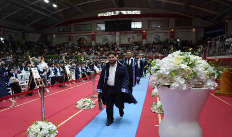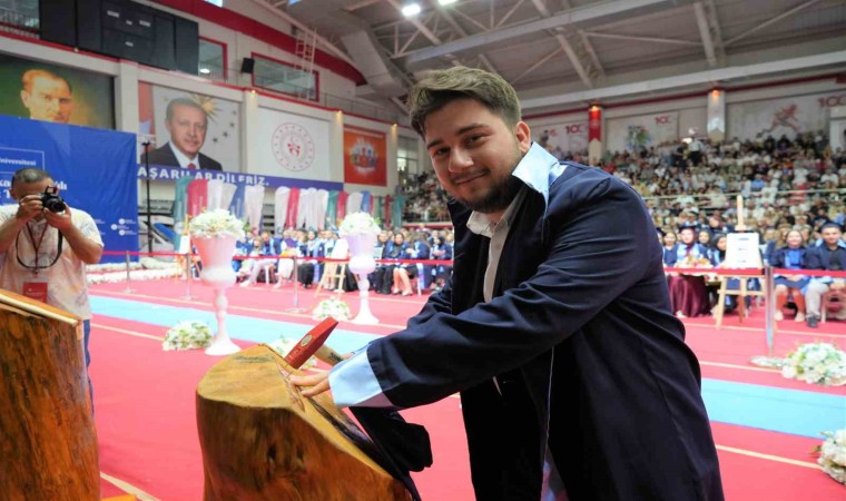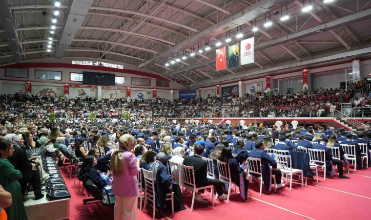 Konuşmanın ardından fakülte, yüksekokul ve meslek yüksekokulu birincilerinden Bilgehan Kasım’a, Muhammet Eyüpoğlu’na, Abdullah Arslan’a, Aren Duru Özer’e, Gürhan Berk’e, Muhammed Taş’a diploma ve başarı belgeleri verildi. Sonrasında öğrenciler yaş kütüğüne plaket çaktı. Ailelerin yoğun katılımıyla gerçekleşen mezuniyet töreni, öğrencilere diploma teslimin ve kep atma ile sona erdi.