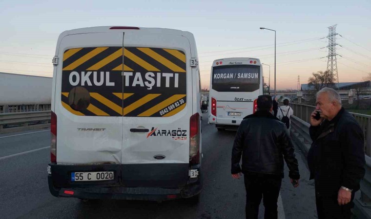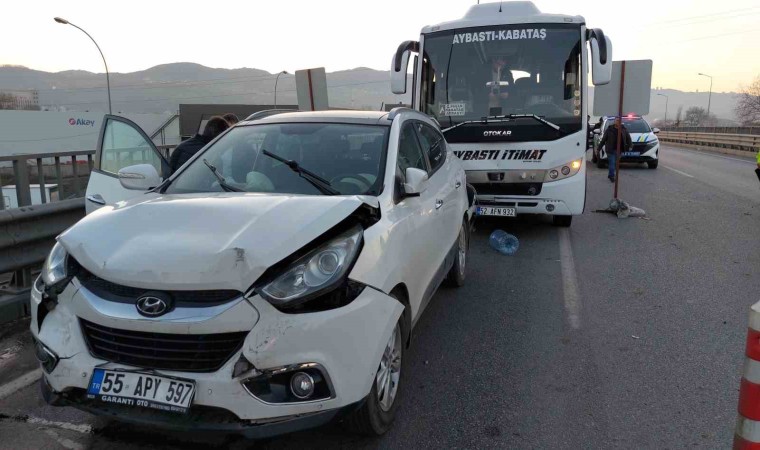 Kaza, Samsun’un Tekkeköy ilçesi Selyeri Mahallesi Atatürk Bulvarı viyadük üzerinde meydana geldi. Edinilen bilgiye göre, Boyabat’tan Rize’ye tuğla taşıyan Süleyman B. idaresindeki 53 K 1760 plakalı tır, yolda çalışmadan dolayı önünde duran Ersin Ç. yönetiminde 52 AFN 932 pkakalı Aybastı İtimat firmasına ait midibüse arkadan çarptı. Çarpmanın şiddetiyle savrulan midibüs önünde bekleyen Fatih M.’nin kullandığı 55 APY 597 plakalı otomobile, otomobil de Fırat Ç. idaresindeki 55 C 0020 minibüse çarptı. Minibüs de savrularak Adem U. idaresindeki 52 HE 545 pkakalı Korganlılar firmasına ait dolmuş midibüse arkadan çarptı. 5 aracın karıştığı zincirleme kazada otomobilde bulunan Hacer M. ve Eymen S. isimli şahıslar yaralandı. Yaralılar ambulanslarla Samsun Eğitim ve Araştırma Hastanesine kaldırılarak tedavi altına alındı. Polis kazayla ilgili inceleme başlattı.