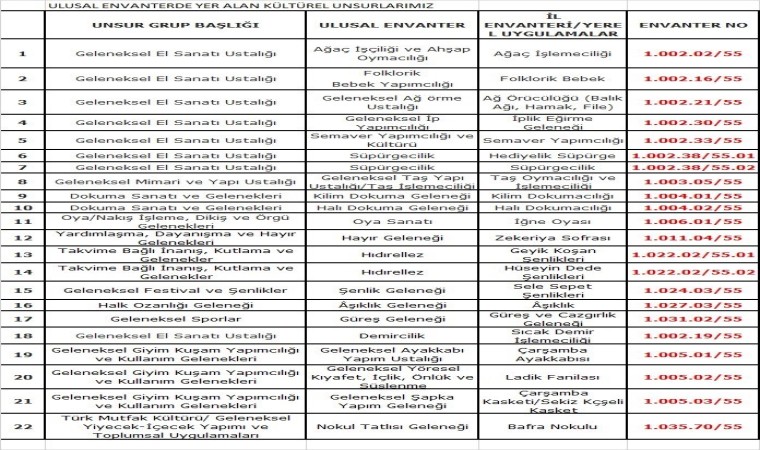 Kurulun bugüne kadar yaptığı çalışmalar doğrultusunda 22 kültürel unsurun ulusal envantere girdiği, 1 kültürel unsurun ise değerlendirme aşamasında olduğu belirtildi.