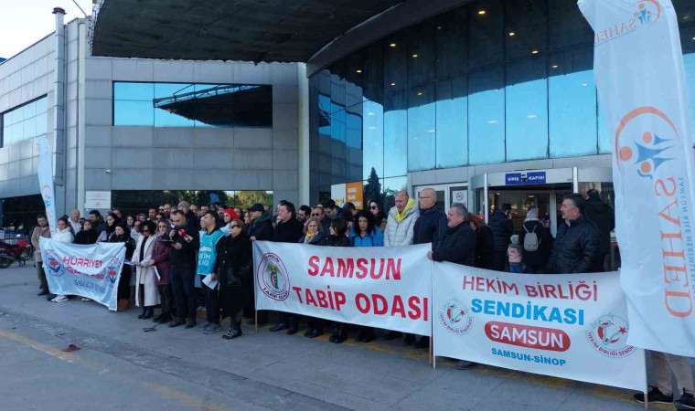 Türkiye genelinde 5 günlük iş bırakma eylemi yapan aile hekimleri, Samsun’da hastane önünde basın açıklamasında bulundu.