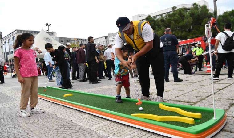 Etkinlikte en çok dikkat çeken uygulamalar ise çocuklar için kurulan trafik alanı ve itfaiye uygulaması oldu.