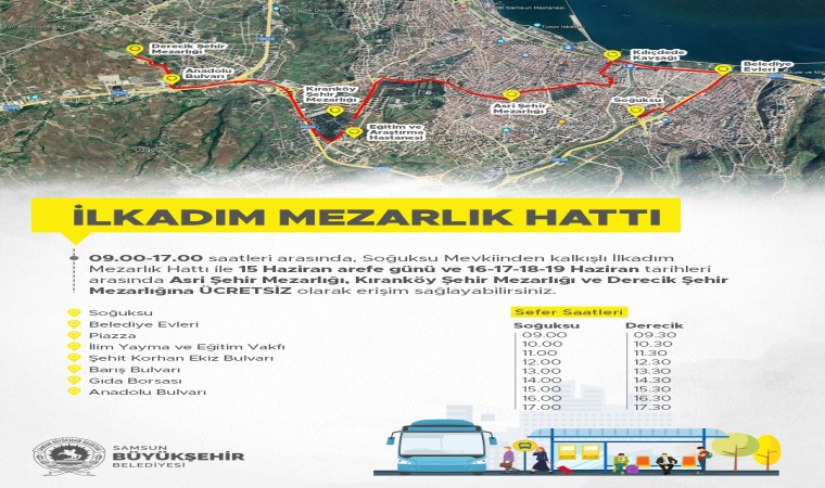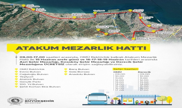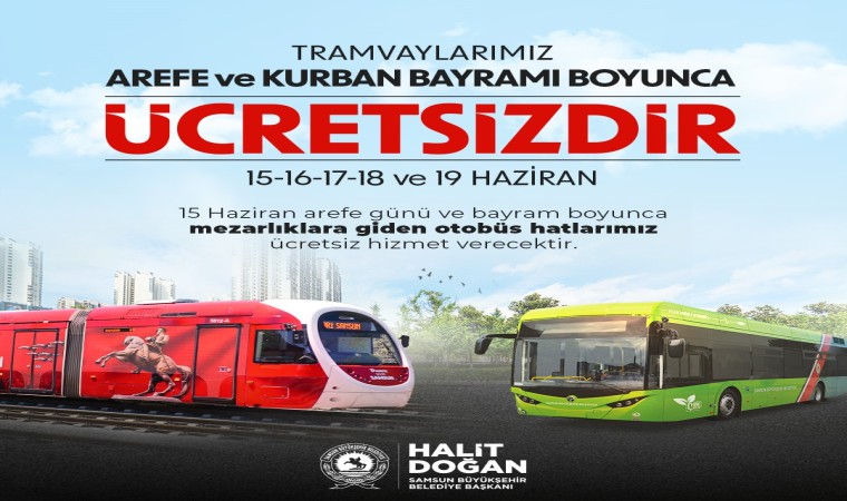 Samsun Büyükşehir Belediyesi, bayram boyunca toplu taşımayı ücretsiz hale getirirken, mezarlık ziyaretleri için de özel seferler düzenledi.