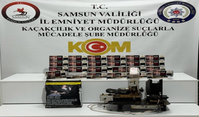 Edinilen bilgiye göre, Samsun Emniyet Müdürlüğü Kaçakçılık ve Organize Suçlarla Mücadele (KOM) Şube Müdürlüğü ekipleri, İlkadım ilçesi Kadıköy Mahallesi’nde bulunan bir ikamette elektrikli sigara sarma makinesi ile sigara doldurup bunları tütüncülere sattığı tespit etti. Söz konusu eve operasyon düzenleyen KOM polisi, 1 adet elektrikli sigara sarma makinesi, 7 bin 200 adet doldurulmuş makaron sigara, 2 bin 800 adet bandrolsüz boş makaron ve 1 kilo bandrolsüz tütün ele geçirdi. Olayla ilgili 2 şahıs hakkında adli işlem başlatıldı.
