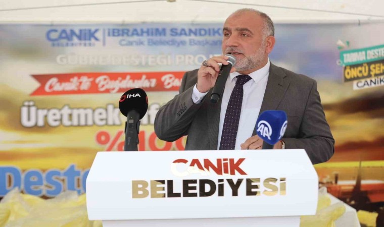 Canik Belediye Başkanı İbrahim Sandıkçı ise "Tarımsal üretim, ekonomik kalkınma konusunda büyük bir öneme sahip olduğu gibi, yeni istihdam alanları oluşturma noktasında da önemli bir rol üstlenmektedir. Verimli toprak yapısıyla bir tarım coğrafyası olan Canik’te, çiftçi kardeşlerimizin daha çok üretim yapması, hemşehrilerimizin yeni tarımsal üretimler yapmalarını teşvik etmek amacıyla, toprak analiz çalışmalarımız da dahil olmak üzere, çiftçilerimize yönelik yüzde yüz destek verdik ve vermeye de devam ediyoruz. 2022 yılında düzenlediğimiz iki ayrı destek programıyla ilçemizdeki üretici kardeşlerimize toplam 15 buçuk ton gübre, 25 ton ise sertifikalı buğday tohumu desteği verdik. Bugün ise ilçemizde buğday üretimi gerçekleştiren çiftçilerimize, toprak yapısına ve buğday üretimine uygun olan toplam 10 ton buğday altı DAP gübre desteği veriyoruz. Canik Belediyesi olarak verdiğimiz gübre desteğiyle hem hasat zamanı çiftçi kardeşlerimizin yüzünü güldürecek hem de ilçemizin bereketli topraklarında, verimlilik seviyesini daha da yukarılara taşıyacağız. İnşallah, ilerleyen süreçlerde çiftçilerimize daha çok destek verecek, sürdürülebilir tarım prensiplerimiz doğrultusunda, Canik’imizin tarımsal üretimdeki verimliliğini arttıracak, gelecek nesillerimize verimli ve sağlıklı bir toprak miras bırakmak için yeni projelerimizi bir bir hayata geçirmeye devam edeceğiz" diye konuştu.