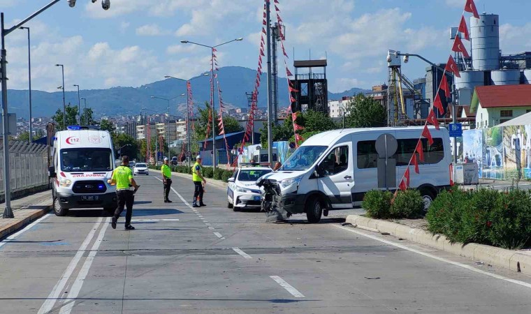 Samsun’da dolmuş minibüs ile çarpışan otomobilin sürücüsü hastanelik oldu.
