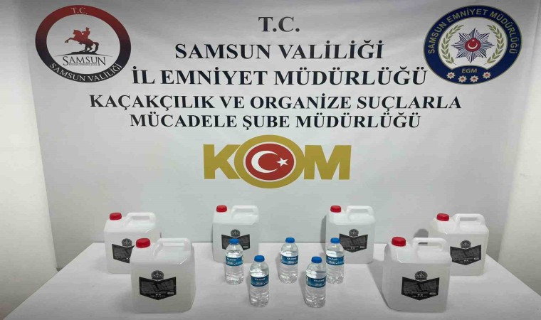 Samsun’da polis tarafından düzenlenen operasyonda etil alkol ve sahte içki ele geçirildi.