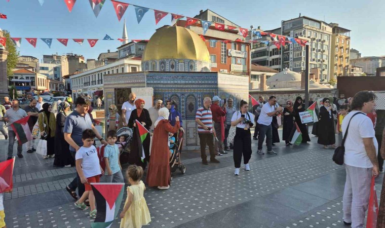 "Şehitlere rahmet, zalimlere lanet" sloganıyla düzenlenen eylem, Saathane Meydanı’nda Kubbet-üs-Sahra maketinin etrafında toplanılmasıyla başladı. Vatandaşlar İsrail’in Filistin’deki katliamlarına dikkat çeken temsili tabut ve kanlı çocuk kundaklarıyla yürüyüşe geçti. "Katil İsrail Filistin’den defol" diye haykıran vatandaşlar Fatih Sultan Mehmet ve Mecidiye Caddeleri istikametinden Cumhuriyet Meydanı’na kadar yürüdü ve burada bir basın açıklaması yapıldı.