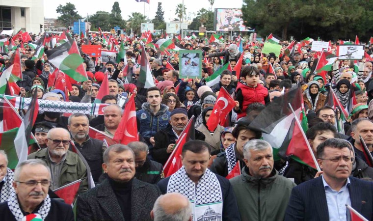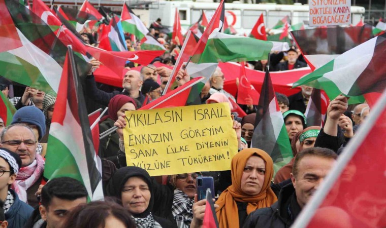 Türkiye genelinde eş zamanlı gerçekleştirilen Filistin’e destek yürüyüşü, Samsun’da 23 Nisan Ortaokulu önünden başladı. Yoğun katılımın olduğu yürüyüş, Çiftlik Caddesi, Lise Caddesi ve Gazi Caddesi güzergahında devam etti. Ellerinde Filistin ve Türkiye bayrakları tutan, İsrail’e tepki pankartları taşıyan vatandaşlar, sloganlar eşliğinde Cumhuriyet Meydanı’na ulaşarak yürüyüşü noktaladı. Burada basın açıklaması yapan Memur-Sen Samsun İl Başkanı Hamdi Yıldız, “Bugün 10 Aralık Dünya İnsan Hakları Günü. Ancak ne hazindir ki, ne acıdır ki hakkın, hukukun, insanlığın olmadığı bir zamanı Filistin’de Gazze’deki kardeşlerimiz yaşıyorlar. On yıllardır Filistin’de büyük zulümler işleyen işgalci terörist İsrail, 7 Ekim sonrasındaki süreçte saldırılarını daha da artırdı. Gazze’de tam anlamıyla bir soykırım yaşanmakta. Son 2 ayki süreçte telaffuz ederken bile tüylerimiz ürperiyor, 13 bine yakın kadın ve çocuk olmak üzere 17 bin Müslüman Filistinli, Gazzeli kardeşimiz şehit oldu” dedi.