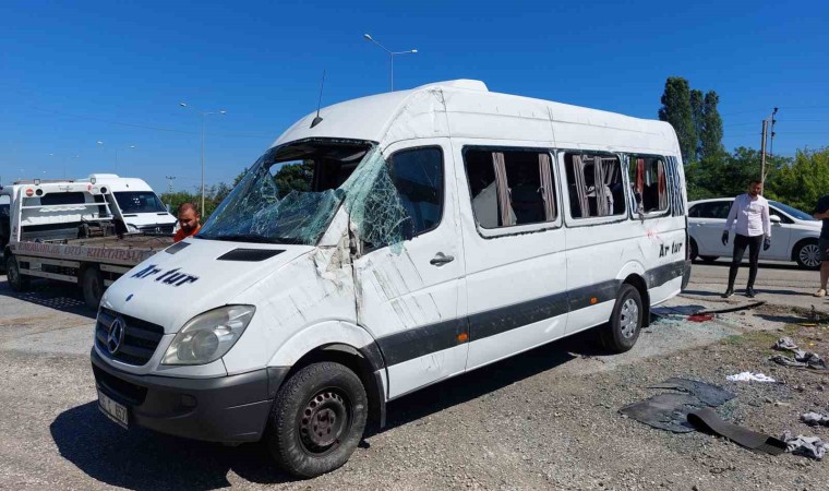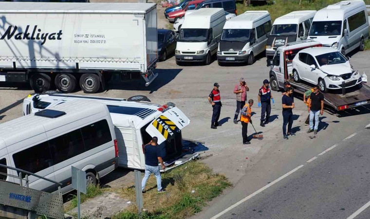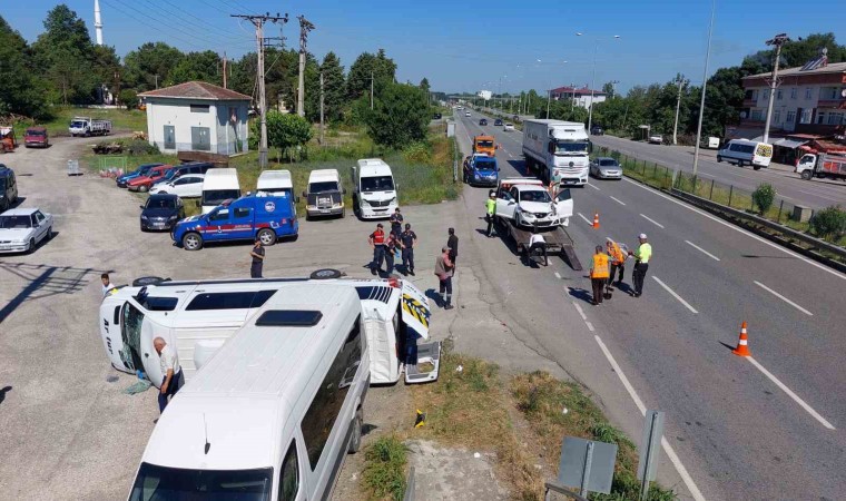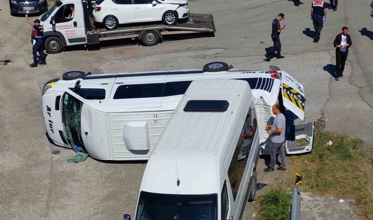 Samsun’da fabrika işçilerini taşıyan servis minibüsünün otomobil ile çarpışıp devrildiği kazada 19 kişi yaralandı.