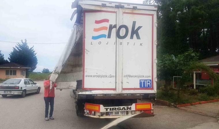 Samsun’da yabancı uyruklu tır, ışıklarda bekleyen tıra arkadan çarptı.