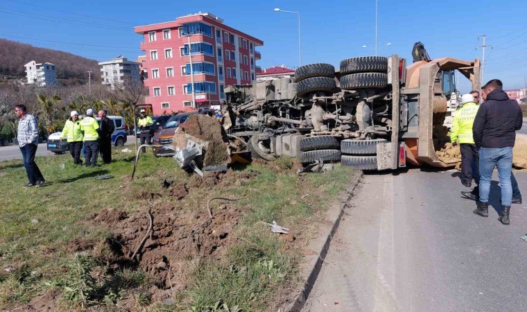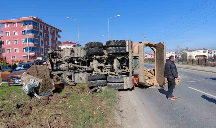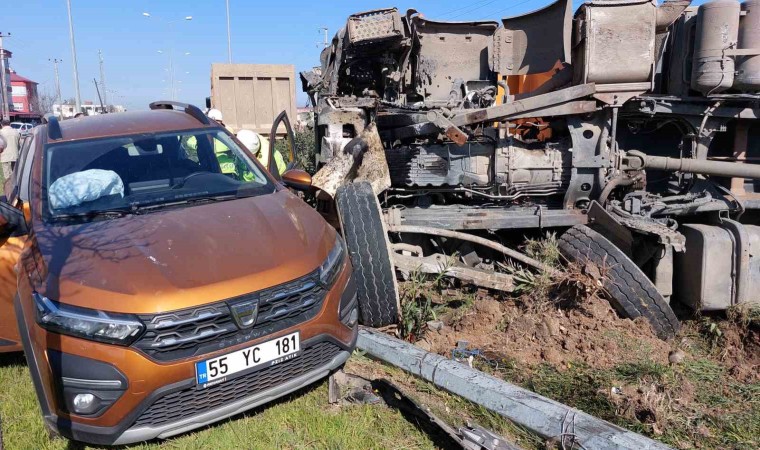 Kaza, Samsun’un Atakum ilçesi Çakırlar Yalı Mahallesi Atatürk Bulvarı Karakavuk Kavşağı’nda meydana geldi. Edinilen bilgiye göre, Bayram Tirink idaresindeki 10 BDE 26 plakalı hafriyat yüklü kamyon, Cemal Yavuz Yılmaz yönetimindeki 55 YC 181 plakalı otomobile yandan çarptı. Çarpışmanın şiddetiyle her iki araç da refüje savruldu. Kamyonun yan yattığı kazada sürücüler yaralandı. Yaralılar, ambulanslarla Samsun Ondokuz Mayıs Üniversitesi (OMÜ) Tıp Fakültesi Hastanesine kaldırıldı.