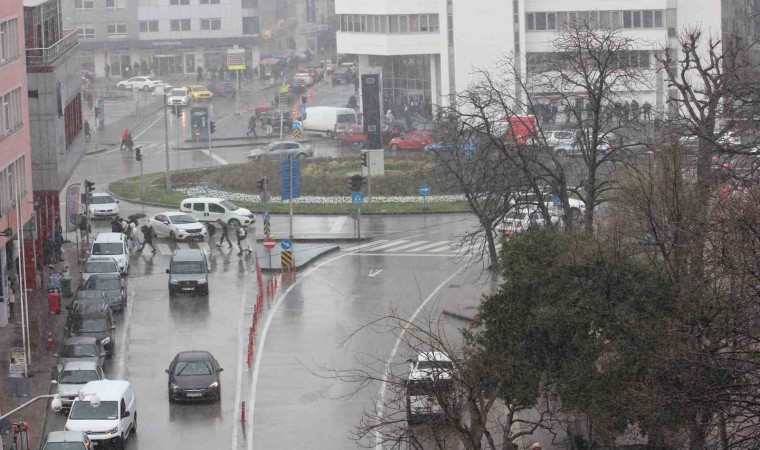 Samsun şehir merkezinde kısa süreli kar yağışı etkili oldu.