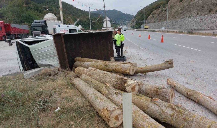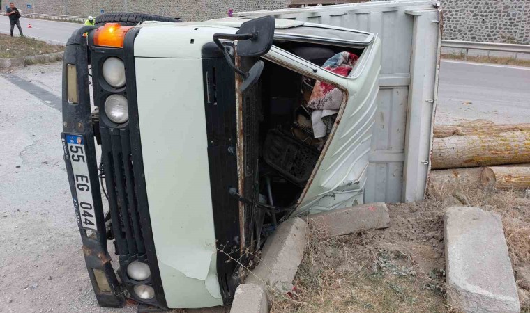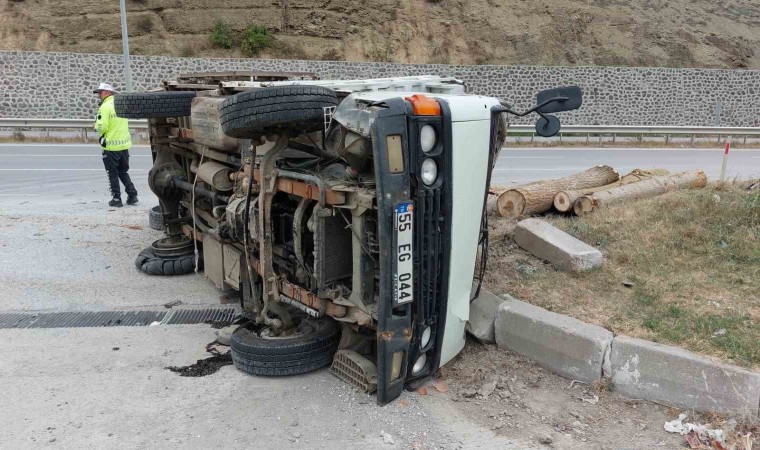 Samsun’da lastiği patlayan tomruk yüklü kamyonetin devrilmesi sonucu meydana gelen trafik kazasında 1 kişi yaralandı.