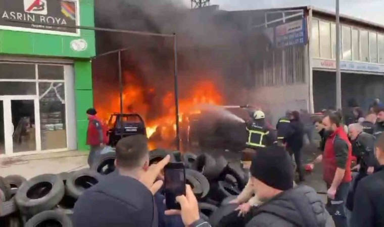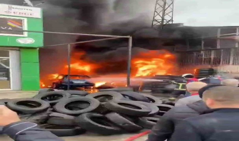 Samsun’da sanayi sitesinde eski araç lastiklerinin bulunduğu depoda çıkan yangın çevrede paniğe yol açtı.