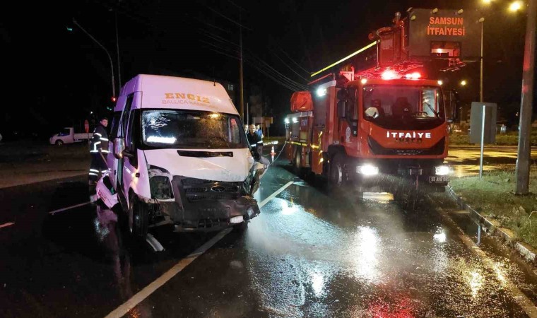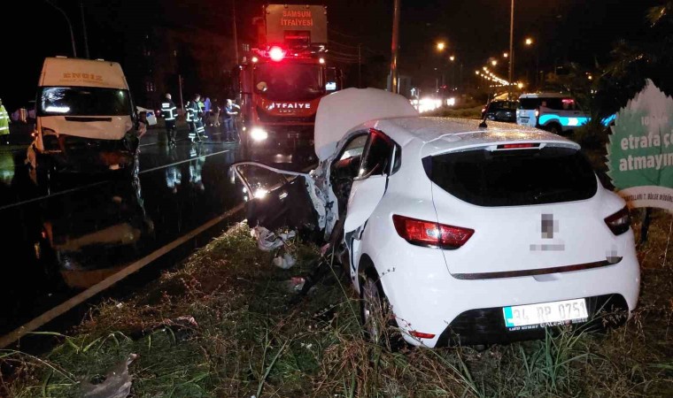 Kaza, Samsun’un Atakum ilçesi Çakırlar Yalı Mahallesi Atatürk Bulvarı Samsun 19 Mayıs Polis Meslek Yüksek Okulu kavşağında saat 22.00 sıralarında meydana geldi. Edinilen bilgiye göre, Mahmut S. idaresindeki 55 M 5716 plakalı dolmuş minibüs, kavşakta yolu karşıya geçmek isteyen Songül T. yönetimindeki 34 RP 0751 plakalı otomobil ile çarpıştı. Kazada otomobil sürücüsü Songül T. ile minibüste bulunan 4 yolcu yaralandı. Yaralılar ambulanslarla Samsun Ondokuz Mayıs Üniversitesi (OMÜ) Tıp Fakültesi Hastanesine kaldırılarak tedavi altına alındı.