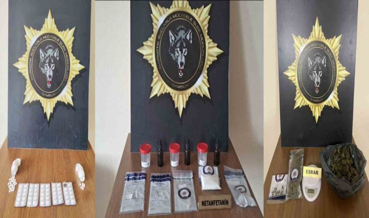 Samsun İl Emniyet Müdürlüğü ekiplerince yapılan çalışma sonucu; bin 942 adet sentetik ecza, 150,51 gram esrar, 108,59 gram metamfetamin, 15,27 gram sentetik kannabinoid (bonzai), 4 adet uyuşturucu madde kullanımına yarar aparat, 2 adet hassas terazi elde edildi. Silahlı tehdit suçundan 1 yıl 3 ay kesinleşmiş hapis cezası olan 1 kişi yakalandı. Olaylarla ilgisi olan 16 şahıs gözaltına alındı.