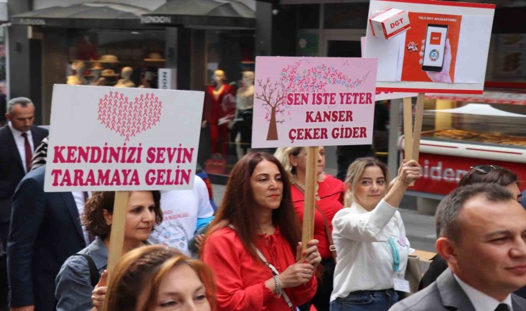 İstiklal Caddesi Verem Dispanseri önünde toplanan sağlıkçılar trampet çalarak Cumhuriyet Meydanı’na kadar yürüdü. Yürüyüştekiler ellerindeki pankartlarla meme kanserine dikkat çekti. Açılan pankartlarda "Yarın olmadan bugün gel, kendinizi sevin taramaya gelin" mesajı verildi.