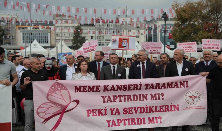Samsun’da Ekim Ayı Meme Kanseri Bilinçlendirme ve Farkındalık Ayı çerçevesinde meme kanserine dikkat çekmek amacıyla bando eşliğinde farkındalık yürüyüşü yapıldı.