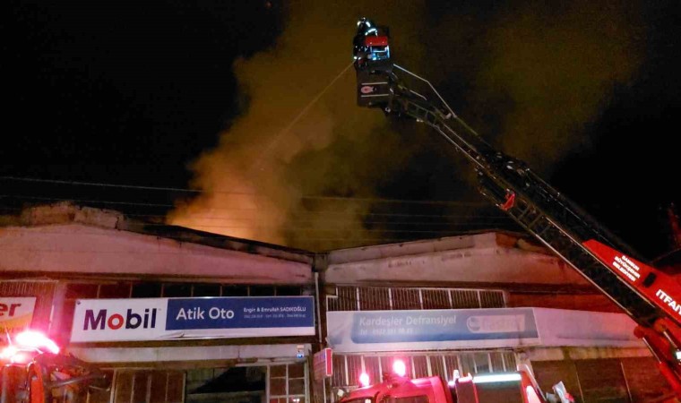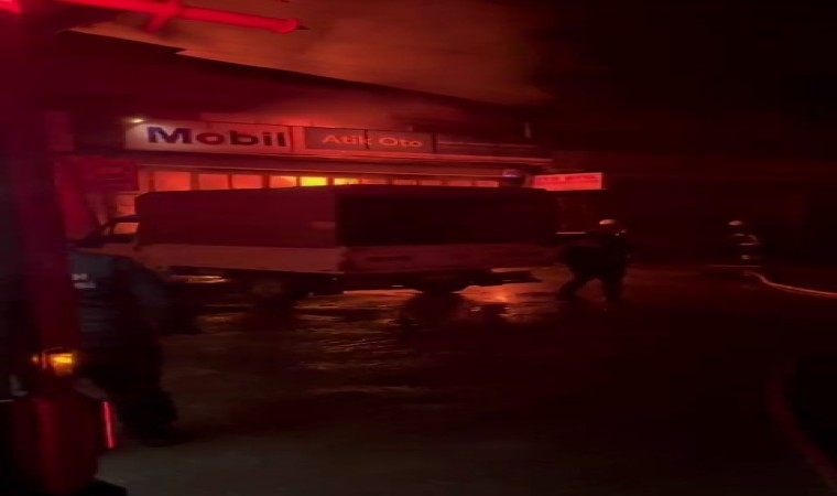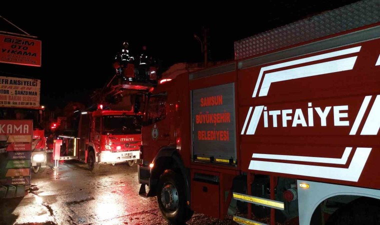 Samsun’da sanayide oto tamirci dükkanı alev alev yandı.