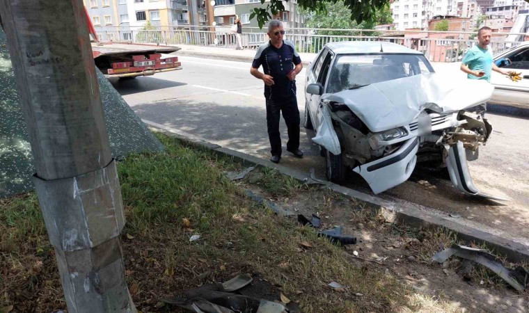 Samsun’da yoldan çıkan otomobilin aydınlatma direğine çarptığı kazada 1 kişi yaralandı.