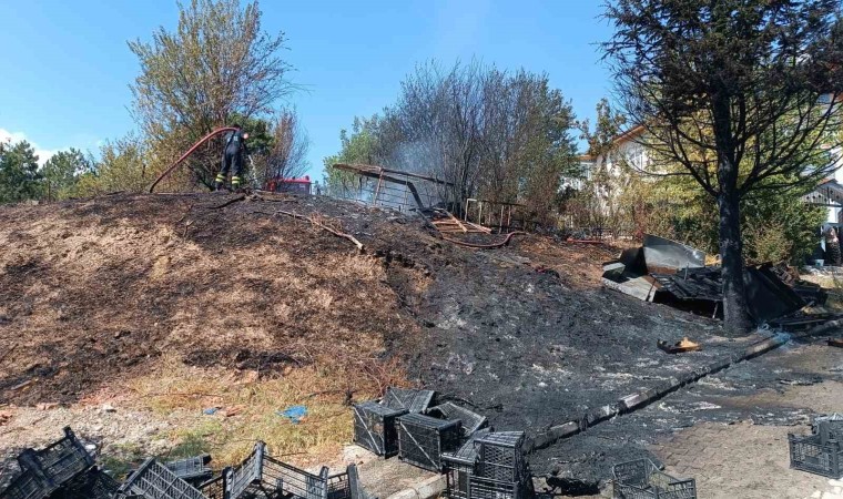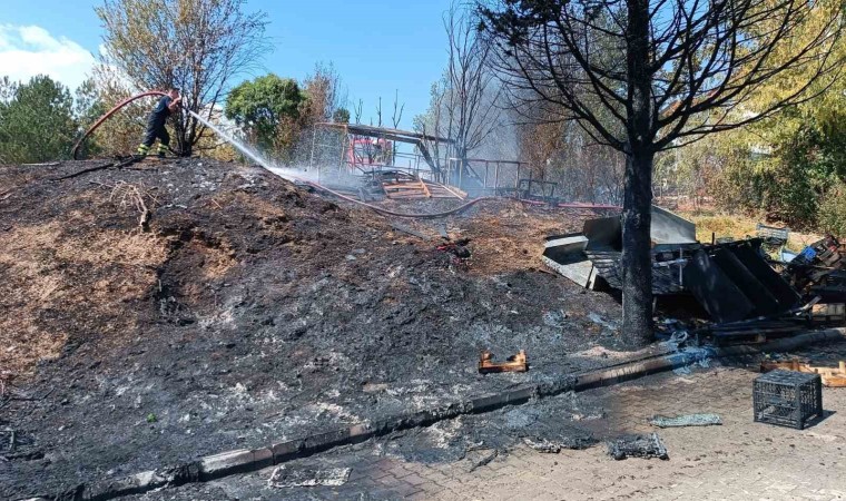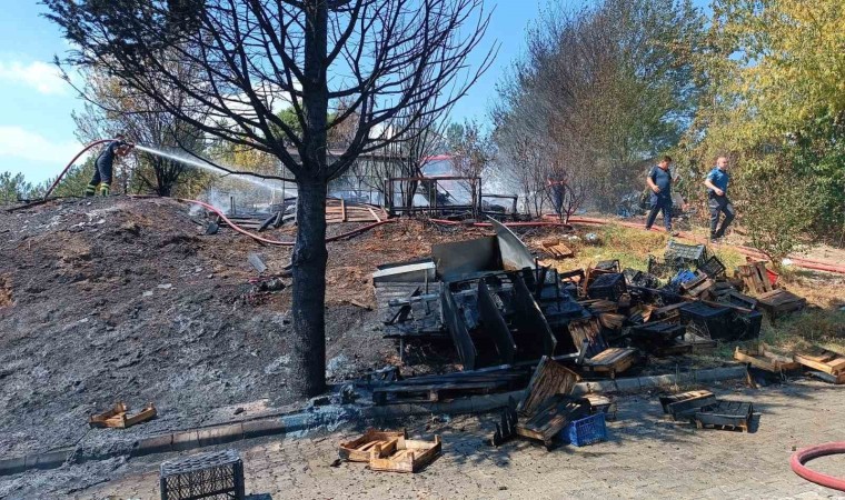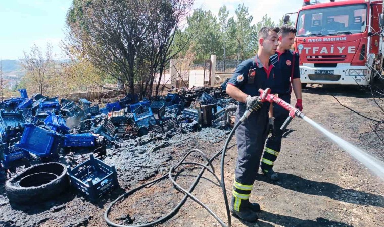 Samsun’un Havza ilçesinde boş arazide bulunan plastik kasalar, çıkan yangında küle döndü.