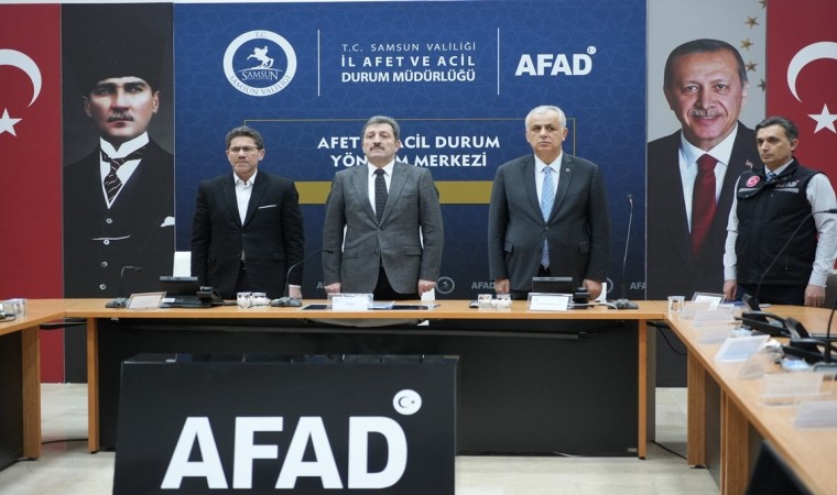 Samsun’da İl Afet ve Acil Durum Koordinasyon Kurulu Toplantısı Samsun Valisi Orhan Tavlı başkanlığında protokol üyelerinin katılımıyla Samsun AFAD İl Müdürlüğü binasında yapıldı. Toplantıda ilk olarak saatler 04.17’yi gösterdiğinde asrın felaketi olarak nitelendirilen 6 Şubat 2023 yılında meydana gelen ve 11 ilde etkili olan deprem felaketinde hayatını kaybedenler anısına saygı duruşunda bulunuldu, İstiklal Marşı okundu. Akabinde Samsun AFAD İl Müdür Vekili Nihat Seçgin 6 şubat depreminde Samsun’da yürütülen faaliyet hakkında bilgi verdi.