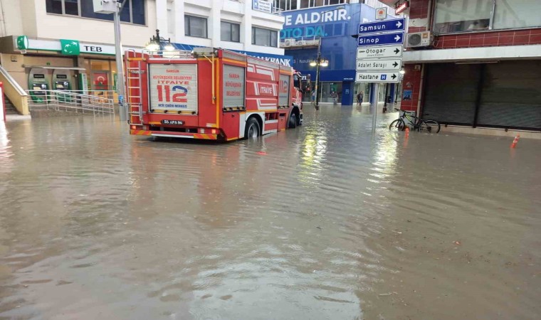 Samsun’da etkili olan sağanak yağış sonucu Bafra ilçesinde cadde ve sokaklar göle döndü, iş yerleri ve evleri su bastı.