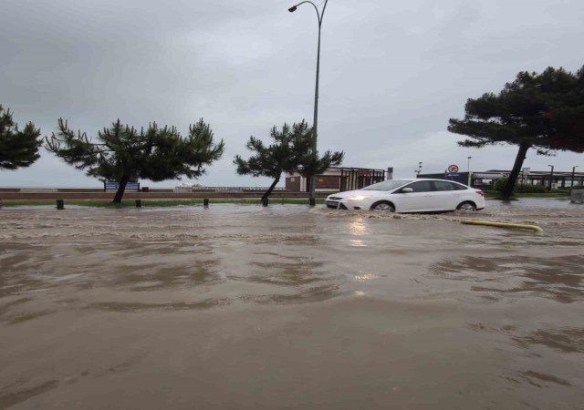 ÖZELLİKLE ATAKUM SAHİLİ ADNAN MENDERES BULVARI SUYLA KAPLANDI. KİMİ ARAÇLAR GÜÇLÜKLE İLERLERKEN KİMİLERİ İSE MAHSUR KALDI.