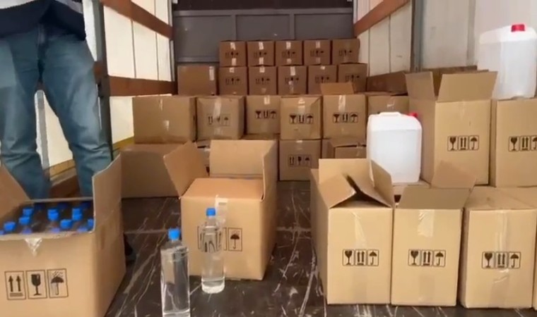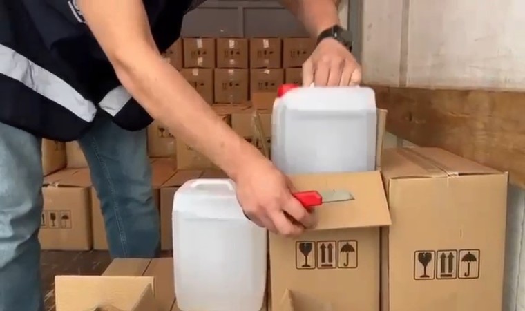 Samsun’da bir tırda arama yapan polis sahte içki yapımında kullanılan 2 ton 40 litre etil alkol ele geçirildi.
