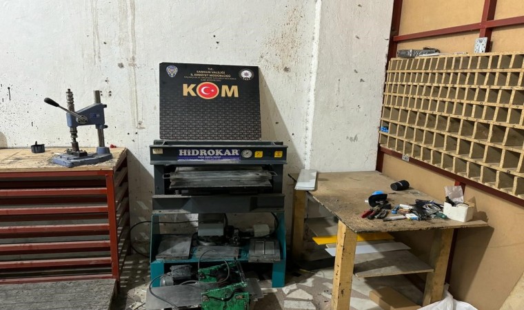 Edinilen bilgiye göre, Samsun Cumhuriyet Başsavcılığı koordinesinde kaçakçılık ve sahtecilik suçlarıyla mücadele kapsamında çalışma yapan Samsun Emniyet Müdürlüğü Kaçakçılık ve Organize Suçlarla Mücadele Şube Müdürlüğü ekipleri, resmî belgede sahtecilik suçuna yönelik yapılan çalışmalarda sahte plaka imalathanesine operasyon düzenledi. Yapılan operasyonda, Avrupa press plaka (APP) olarak bilinen, büyük ve kalın yazı karakterleri kullanılarak daha dikkat çekici görünümlü plakaların basıldığı tespit edilen yasa dışı bir basım atölyesinde ve şahısların araçlarında yapılan aramalarda 1 adet sahte mühür basım makinesi, 1 adet plaka baskı pres makinesi, 1 adet plaka boyama makinesi, 90 adet basılı APP plaka, 486 adet boş plaka levhası, 196 adet harf kalıbı, 154 adet rakam kalıbı ele geçirildi. Olayla ilgili H.T. ve A.B. gözaltına alındı.