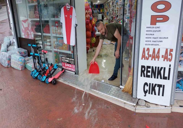 Kırtasiye dükkanı sahibi Hikmet Selen sel suyunun iş yerini basması sonucu zararının en az 200 bin lira olduğunu söyledi.