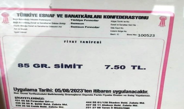 Uygulanan zam hakkında açıklamalarda bulunan Samsun Fırıncılar Odası Başkanı Yılmaz Yiğit, “Simide de ekmek gibi bu yılın Şubat ayında zam yapmıştı. O zamanki tarifede 75 gram simidin fiyatını 5 TL olarak belirlemiştik. Bugün yaptığımız zamla birlikte simidin gramını 10 gram arttırdık, fiyatını da 7,5 TL yaptık. Böylelikle bugünden itibaren Samsun genelinde 85 gram simit 7,5 TL’den satılacak. Artan maliyetler nedeniyle böyle bir zam yapmak zorunda kaldık” dedi.
