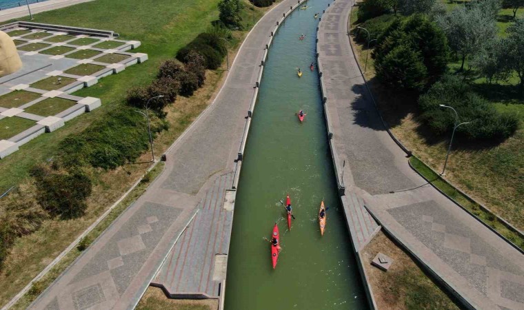 Samsun Büyükşehir Belediyesi, Batı Park’taki Su Sporları Tesisi’nde su sporu tutkunlarına ücretsiz “kano” eğitimi veriyor.